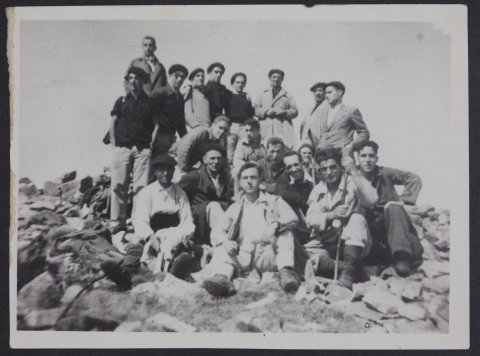 Argazkian mendizale talde handi bat dago mendi tontor baten gainean.