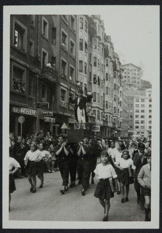 1966 urteko Euskal Jaietan egindako kutxa dantzaren argazkia